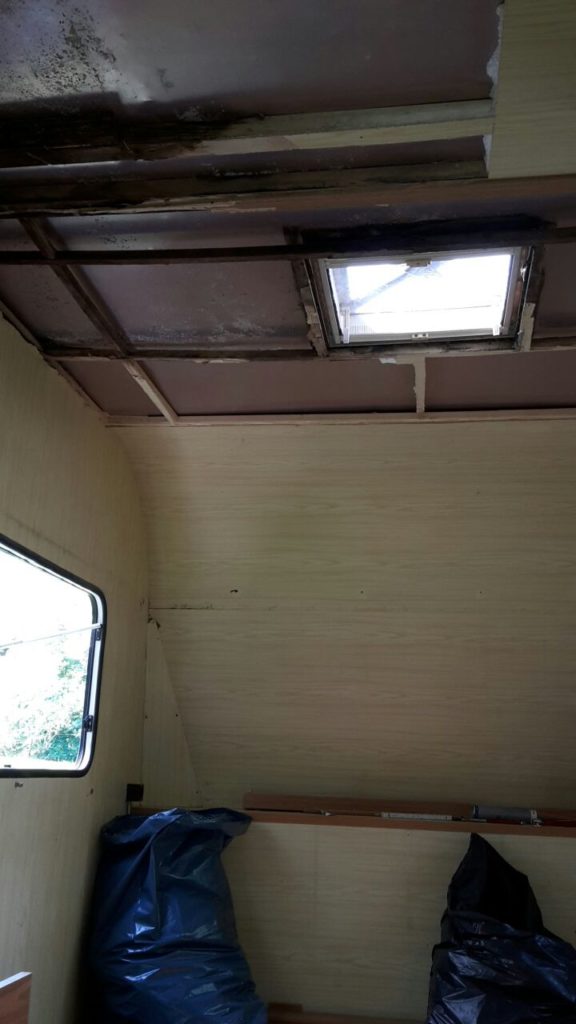 Also wurde die Entscheidung getroffen wenigsten im Deckenbereich (um die Luke) die Verkleidung zu entfernen und den Wasserschaden zu begutachten.
